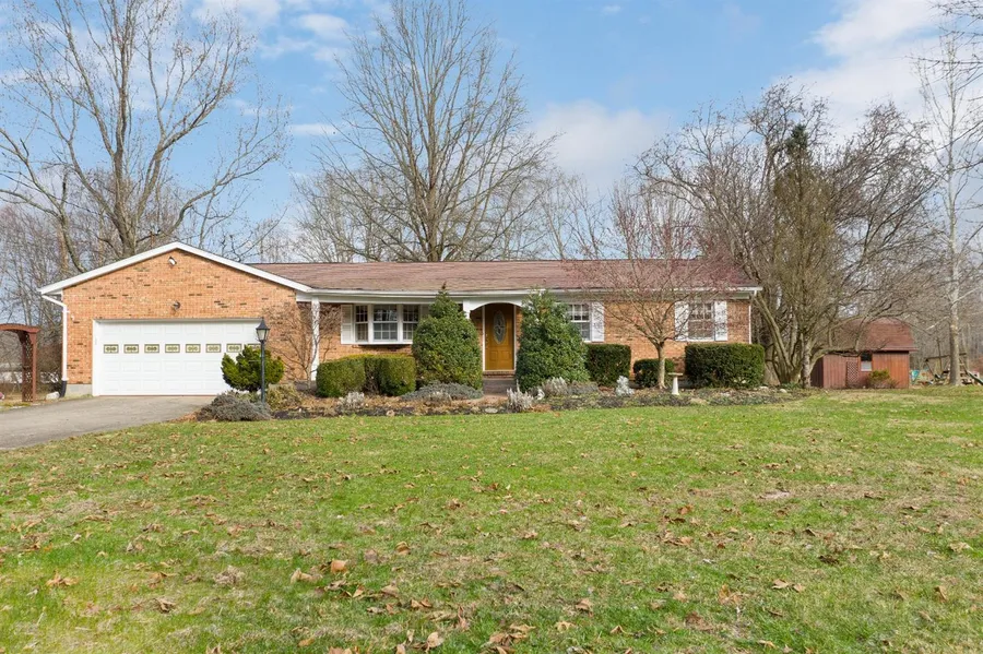 Well maintained brick ranch on over an acre. Brand new roof 2022, new paint, carpet in owner's suite. 2004 addition boasts huge kitchen and great room with an open floor plan perfect for entertaining! Large beautiful yard with brick patio, mature trees and perennials. Large shed for extra storage. Full basement in original part of home. Pella replacement windows throughout. Selling as-is.