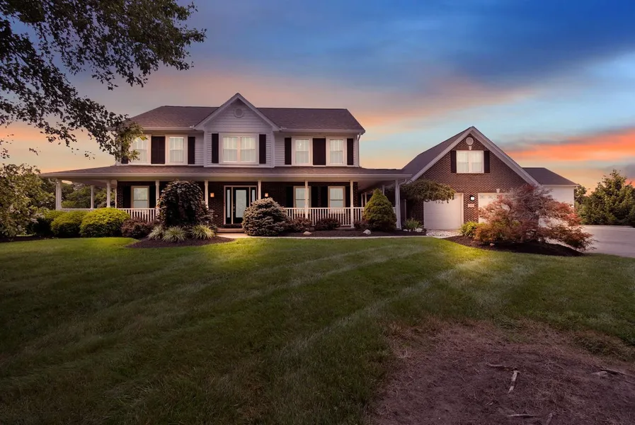 Spaciously designed 5-bedroom with an entertainer's delight in the finished lower level that includes a wet bar, fully equipped kitchen, inviting in-law suite on the first floor and convenient walk-out access from the great room. The kitchen showcases opulent granite countertops, sleek stainless-steel appliances, accommodates parking for 2 cars in the attached garage and an additional 4 cars in the detached garage. The 2-story family room boasts natural sunlight and a gas fireplace. A paradise for hosts, featuring an expansive deck, a sheltered patio, with two outside televisions and an outside sound system and a heated in-ground pool nestled on 2.6 acres of land adorned with meticulous professional landscaping. Ideally situated just moments away from Eastfork State Park. With over 3200 square feet of living space, complemented by a charming covered front porch. New Roof 2023. Hot tub is included.
