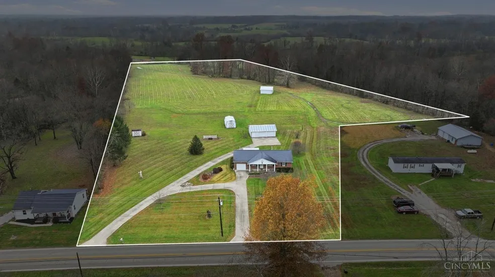 Discover your dream home at 1619 in Bethel, an all-brick ranch that sits on just under 9 acres. A classic columned porch welcomes you into a sunlit living room and an expansive eat-in kitchen that opens to a covered deck for year-round outdoor dining. The thoughtful single-level layout features 3 bedrooms and 2 full baths. Storage and workspace abound with an attached garage offering direct entry to the kitchen, ideal for staying dry on rainy days, unloading groceries, and easing access for seniors or parents with little ones, plus a separate 2-car detached garage and versatile outbuildings for hobbies or equipment. The long driveway and wide-open yard create a sense of space and freedom, accented by charming touches like a wishing well. Clean, well-kept, and move-in ready with great bones, this home offers endless potential and convenient access to SR-133 for easy commuting. Schedule a tour today and experience the charm for yourself!