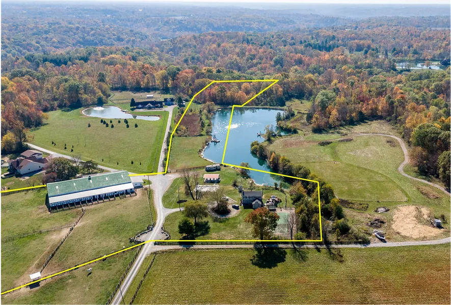 Discover the perfect blend of tranquility and convenience! Located at the end of Wild Rose Lane behind gated entry, this beautiful 11.1 acre horse property offers a peaceful retreat for horse enthusiasts and nature lovers alike. Original 3 bedroom farmhouse with scenic views of 3+ acre stocked pond, and in-ground pool. Spacious 14 stall horse barn equipped with a 150x70 indoor riding arena with tack room, 3 fenced paddocks, and an updated lounge with Kitchen, full bath, and laundry. A rare opportunity to create your own secluded oasis just 5+ miles from I-275 & SR 28 conveniences. Remaining 19.26 acres also available for sale.