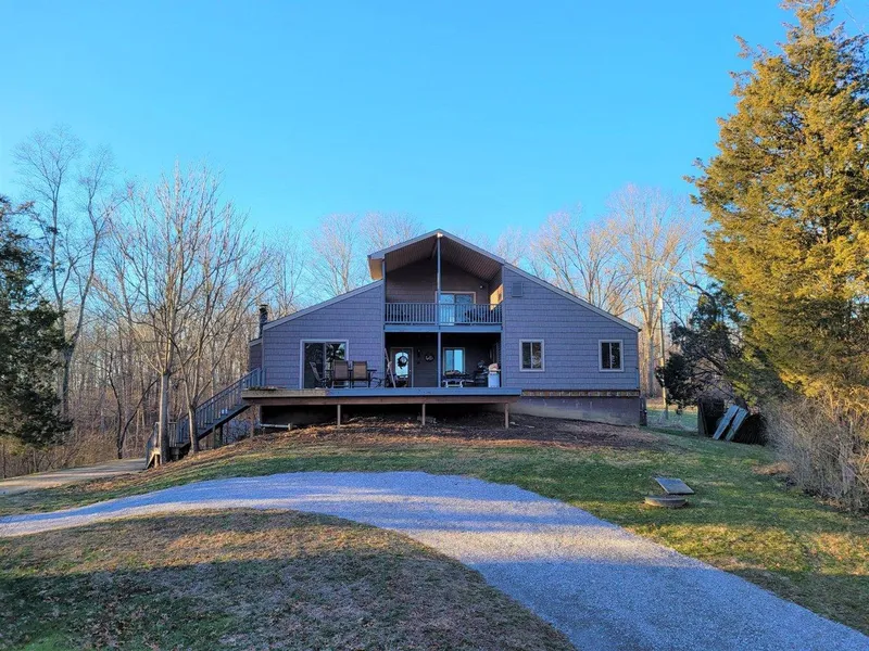 Gorgeous raised ranch on 10 acres with plenty of privacy and wildlife just 25 mins from 275! Home had previously been totally updated and upgraded mostly in 2017 with new windows, flooring, kitchens, baths etc. Trex decking 2021. There are two deck levels to entertain or relax with your favorite drink and enjoy the amazing river views! The second living area with walkout is located in the lower level and would be perfect for a mother-in-law suite, vacation home, or Airbnb!
