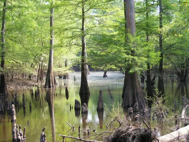 The timber on the property consists of a combination of patches and scattered large hardwood timber and heavily stocked natural hardwood regeneration estimated at about 10 years of age. The larger hardwood timber exists in patches across the property and along the river and drainage ways and consists of a mix of oak, gum and cypress. In open are...