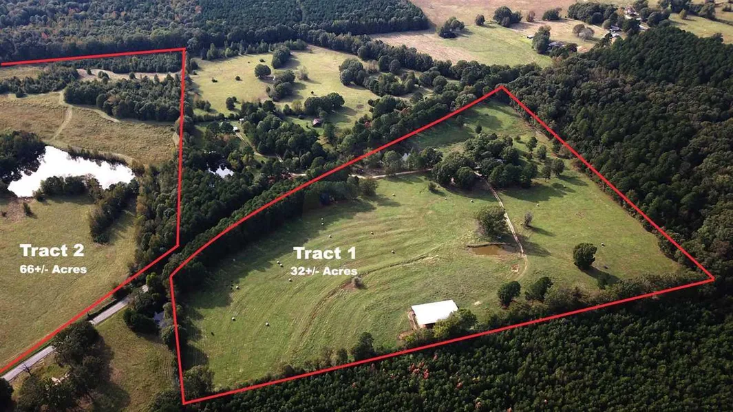 Across the road is tract 2, totaling 66 +/- acres. Right when you turn off the road there is a fully enclosed 40X40 metal shop and just past that is an older 40X40 wooden barn used for storage. As you enter the gate into the pasture this part of the property is also very well maintained with perimeter and cross fencing. There are also 2 ponds on this tract with one being a large 2.5 acres and stocked with catfish. Looking around the property you will multiple signs of wildlife such as deer and hog. There are two box stands already set up on this side that will stay with the property. There are many spots where one could come in and plant some very nice food plots for deer.