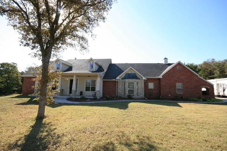 Custom home on 15 acres nestled directly across from Lake Thunderbird. Paved driveway, with additional parking. Beautiful, immaculately maintained home. 30x60 Barn with insulated roof, covered stalls, concrete floor, bathroom with shower, seperate well & septic & 2.5 fenced acres. Spring fed pond. Completely screened back porch.
