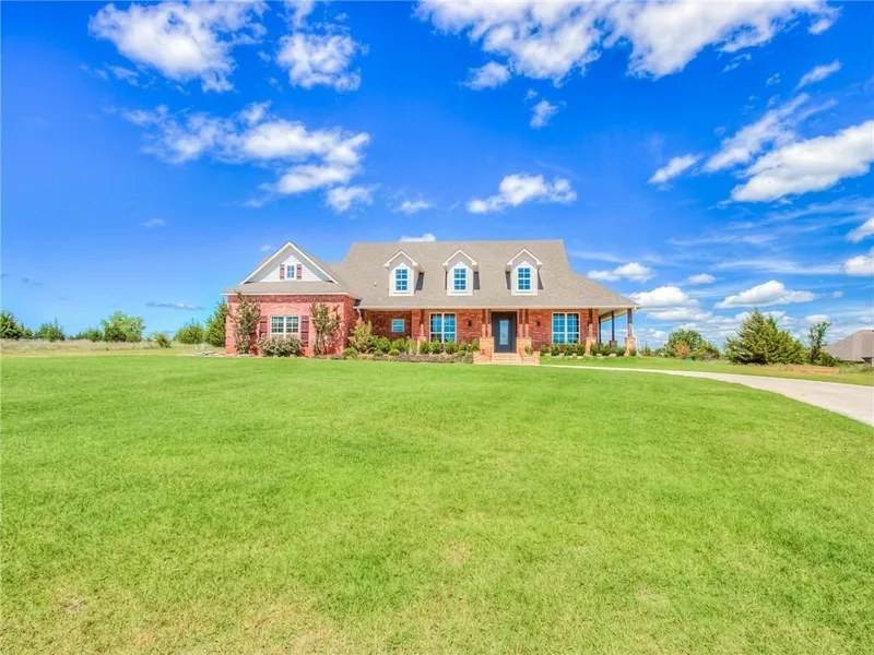 Enjoy peace and tranquility in this attractive spacious 4 bedrooms, 3-1/2 baths home with a huge wrap around porch built on 2 acres in an established addition within a short drive to OU, shopping and the lake. A bright entryway will lead you to large living area with vaulted ceiling and a striking stone fireplace. The gourmet kitchen is loaded with quality woodwork and abundant storage, granite countertop. Beautiful hardwood floors flow throughout the whole area, custom lighting and tile work all highlight the best of this property. Oversized formal dining room, study/second living area. Spacious master bedroom with a luxurious bath. Utility room with room for a work area. 1/2 bath, all downstairs. Upstairs 3 bedrooms, 2 baths. A perfect home for the growing family to call home.
