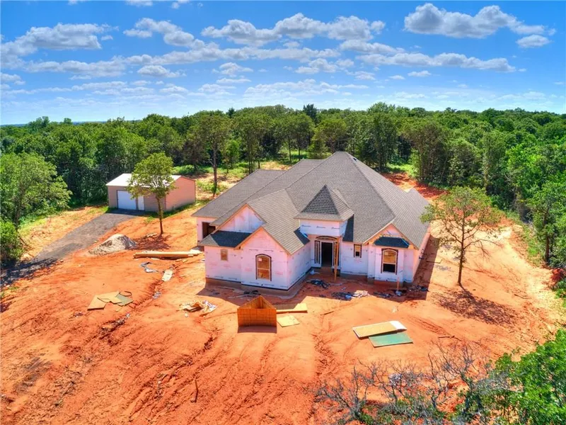 Secluded in the beautiful woods! Come up the lovely winding, shaded, driveway to your personal sanctuary! Leave the cares of the world behind! Quality construction combined with choice land and location! Quick to TAFB, OKC, Norman, I240. 2 min to 13 mi Draper Lake biking/walking trail.Open floor plan; lg island; huge walk in pantry-sliding barn door. 3cm granite counters accent custom cabinetry and stainless appliances; custom copper island sink; natural stone and porcelain showers & tub areas. Great room and back patio have cathedral ceilings. Elegant staircase from gallery entry leads to bedroom and bath upstairs. Hand scraped walnut wood flooring most of home! Natural stone & granite counters thru-out. Crown molding in most areas; bedrooms have designer ceilings. Master has a huge walk in closet, separate shower and jetted tub. 25x30 metal shop with finished 240 sq ft apt! Buyer to ve...