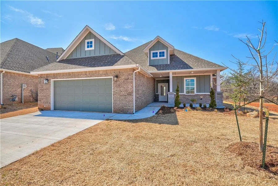 The inviting front porch of this craftsman welcomes you inside this new floor plan, loaded with tons of extra features and located in Piedmont schools' picture perfect Montereau addition, just a short walk away from your neighborhood pool & clubhouse. Beyond the stunning curb appeal, the hand built cabinetry, designer wood grain tile in all of the main living areas areas, natural stone countertops, vintage style accents & custom curated fixtures showcase the workmanship that you'll find throughout the inside of this beautiful home as well. The flexible floor plan includes an open living & kitchen with raised ceilings, showcase corner fireplace & oversized center island for quick meals or gathering with friends. Relax in your jetted tub or soak in the resort style walk-in shower of your master suite, which is a true retreat. Built with quality to last and proudly featuring 16 inch center walls, engineered post tension foundation, long rated shingles & much more. Don't miss this one!