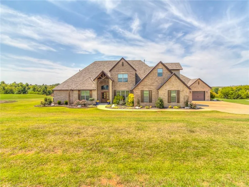 Absolutely STUNNING home in beautiful Manor Lake Hills! Enjoy the quiet luxury of the country minutes from town. Soaring ceilings welcome you into the foyer. Private study with beautiful shelving is just to the left and formal dining on your right. Main living area has cozy fireplace, shelving and great view of the pool! Open kitchen features island, pantry, high top bar and eating space. Primary suite is your private oasis with shower, soaker tub, double vanities and huge closet. Upstairs in main house are 3 bedrooms, 1 with private bath. Home features surround sound, 4 oversized garage bays and storm shelter in 4th car! Guesthouse includes bedroom, open living, dining and kitchen plus full bath with laundry. Home rests on an immaculate lot with heated pool complete with 3 water features, 1 tanning shelf featuring 2 bubblers, umbrella hole and access to open patios. Welcome home to your...