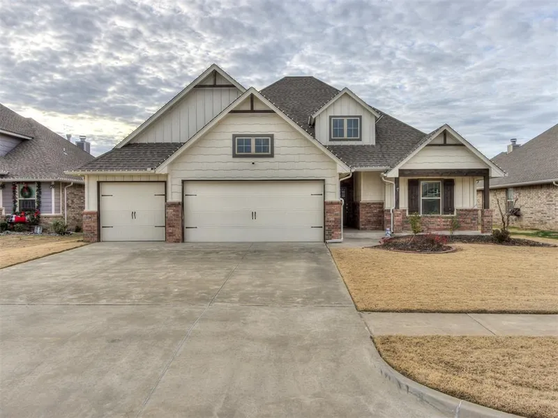 Stunning four-bed, three-bath home in Norman, nestled on a corner lot. Beautiful, wood-look style tile floors guide you through this open layout with a cozy fireplace in the living room and modern kitchen! It boasts a large island, bar seating, stainless steel appliances, a massive pantry, and ample cabinet space. The primary suite features a stylish tray ceiling, while the ensuite bath offers two separate vanity areas with granite countertops, a luxurious soaking whirlpool tub, and an expansive walk-in closet. Upstairs, discover a spacious bonus room with a full bathroom, offering versatility for a playroom, office, or guest suite, even a movie room. Outside, the covered patio sets the tone for a lovely evening no matter the season, complete with a ceiling fan and wood burning fireplace – the perfect retreat for relaxation or hosting loved ones. With 2355 square feet of thoughtfully des...