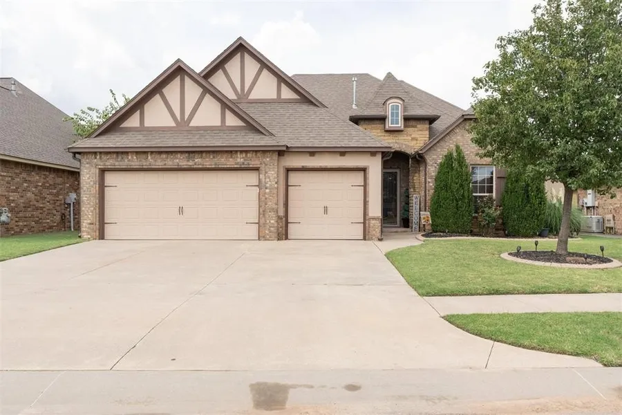 BRAND NEW ROOF & FENCE! Welcome to this immaculately maintained 2,000+ sq ft home that has so much to offer! With an open concept, yet cozy floor plan, this home just makes sense, with tall ceilings, exposed beams, & rich tones throughout the house. The central living space offers a lovely fireplace and mantel, vaulted ceilings, and tons of natural light, which flows seamlessly into the dining and kitchen space. The kitchen has ample storage and granite counters. Each of the 3 bedrooms are well-sized, with one of the 3 set up as a home office. The primary is huge, with large windows overlooking the backyard. The en suite has a soaker tub, walk in shower, separated vanities, with a large walk in closet. Passing through the closet you'll find a large mud room/laundry room with cabinets for storage, as well as large wall cabinets for shoes, backpacks, etc. The home also has a large 3-car garage with a built-in storm shelter. The backyard is green and spacious, with a good-sized covered back porch for furniture, a grill, and more! Don't let this one get away, call for a private showing today!