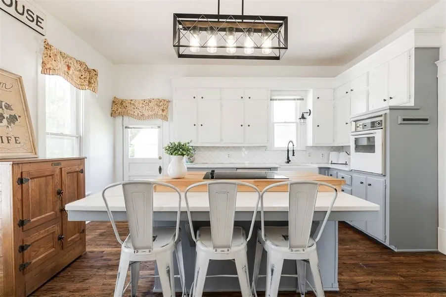 You'll find original wood floors, detailed ceilings, and lovely woodwork throughout the home. The kitchen is both charming and functional, featuring quartz countertops, abundant cabinetry, and an island. With two spacious living areas and two dining spaces, including one that easily fits a table for eight or more, this home is ideal for both quiet mornings and festive gatherings. It also has plenty of space if a private study with an original fireplace is on your wishlist.
