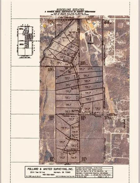 Welcome to Ridgeline Estates! Norman's newest private upscale development in East Norman at 140th and Cedar Lane Rd. Each of these 28 lots ranging in size from 10 to 20 acres have incredible character with gently rolling hills, oak and pecan trees. This lot has 16.10 acres with a gentle rolling slope from Baxter Lane to the west end of the lot creating incredible view. Evenings watching sunsets and the abundant local wildlife will make lasting memories at each of these wonderful homesites. This private development won't have streets completed until December, but we are making lots available now. OEC will bring electric up all the streets at no charge and provide High Speed Fiber internet. Come take a tour and pick out your future homesite. Horses allowed. Lot prices ranging from $12,500 to $20,000 an acre.