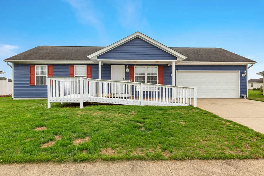 Gorgeous 3 bedroom Breese home with great curb appeal offered by the charming covered front porch! Step inside to find the spacious family room featuring a soaring vaulted ceiling, lovely wood floors, open spindle staircase, and great natural light. The living room leads to the well appointed kitchen boasting a large center island, ample cabinet storage, and kitchen appliances stay with home. The main floor master bedroom suite features a vaulted ceiling & attached bath. Also on the main level find generously sized bedrooms 2 and 3, & two additional full bathrooms. Step downstairs to the partially finished lower level to find the sprawling family room, bonus room, 1/2 bathroom, laundry room, & storage area. Other items of note include the large concrete patio overlooking the spacious back yard, and the attached 2 car garage.