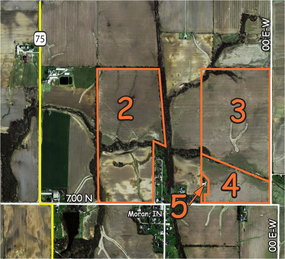 LOCATION: Tract 1 is at Hwy 26 and Hwy 75. Tracts 2-5 are 7 miles north of Frankfort on CR 700 N at Moran, IN