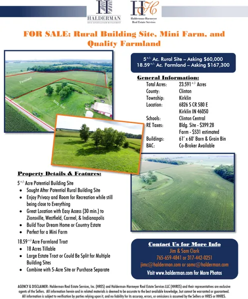 Legal Description A part of the Southwest of the Southeast of Section 10 containing 5 acres more or less in Township 20 North, Range 1 East, in Clinton County, State of Indiana