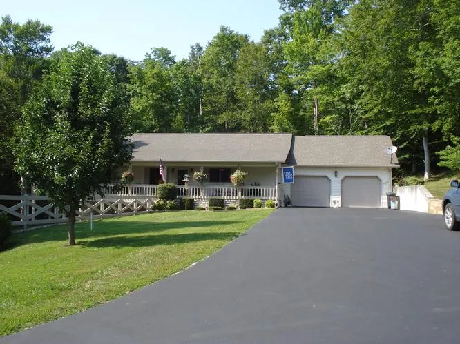 Beautiful spacious vinyl 3 bedroom, 2 bath ranch home on 2.5 acres m/l with a view of Dale Hollow Lake in Albany, Kentucky. This home has a wraparound porch with the view of Dale Hollow Lake. There is a blacktop drive leading to 2 attached garages with plenty of space for your boats and cars. The home has plenty of living room. Large kitchen with pantry, utility room off kitchen and 2 car garage. Open floor plan with dining room and family room. Family room has a beautiful gas stone fireplace (which was laid by local craftsman). You can walk to the screened in porch from the living room with views of the woods. Two bedrooms and 1 bath off the livingroom and the master bedroom, walk in closet and master bath with jetted tub and separate shower complete the master area. More great space in the finished basement. Two bedrooms, one full bath and family room are all ready for that large famil...