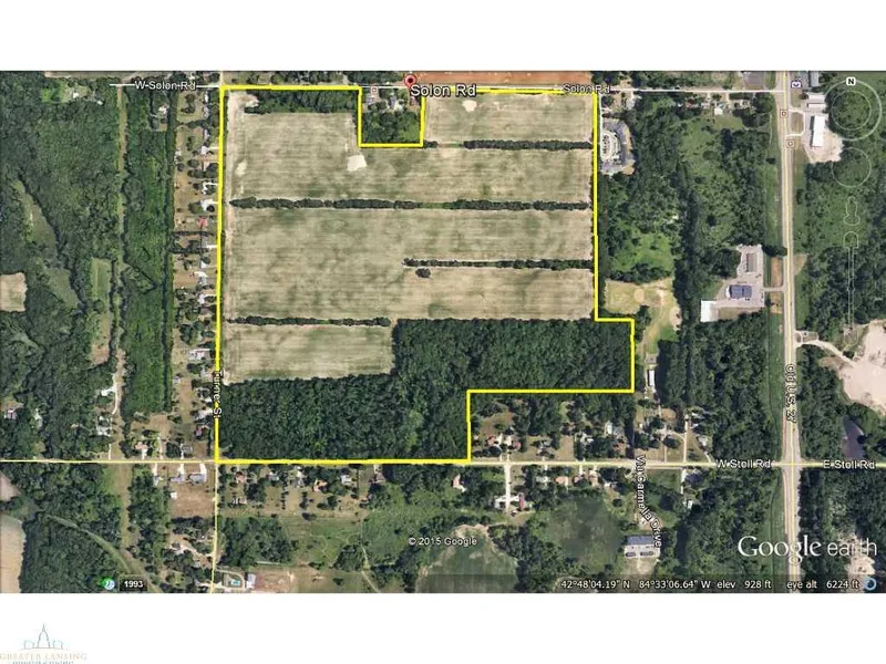 This is a really great property. 149.57 Acres in DeWitt Township. 102 Acres of tillable farm land currently leased until end of 2015. 47.57 Acres of woods and non-tillable land. Boundary survey was completed in 1993. Full site topographic survey was completed in 1997. Soil borings were taken along with water table elevations in 1997. The soil boring revealed Sandy Loam soils over the entire property. Sanitary Sewer is at the road. The property features road frontage on Stoll Road, Turner Street and Solon Road. This is a great investment opportunity, either as farm property or as a development property. A lot of the ground work has already been completed.
