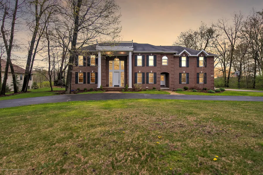 Custom built, Colonial in award winning Haslett schools. You'll enjoy the wooded views as you drive into the Bonnie Meadows Lakes area; situated on 1.1 acres of more trees, with a PRIVATE LAKE! Your circular drive brings you around to the stately columns of your front entry; everything you would want your guests arriving to. For the owners, there is ample parking towards the lake, with attached 4 car garage and basketball hoop. Your grand foyer is flanked with an office, perfect for establishing a work home-base; warm wood tones and gorgeous built-ins as well as formal dining, perfect for that next gathering of friends. Entering the Great Room the eye will be torn between your views of the lake and the amazing fireplace with built ins and floor