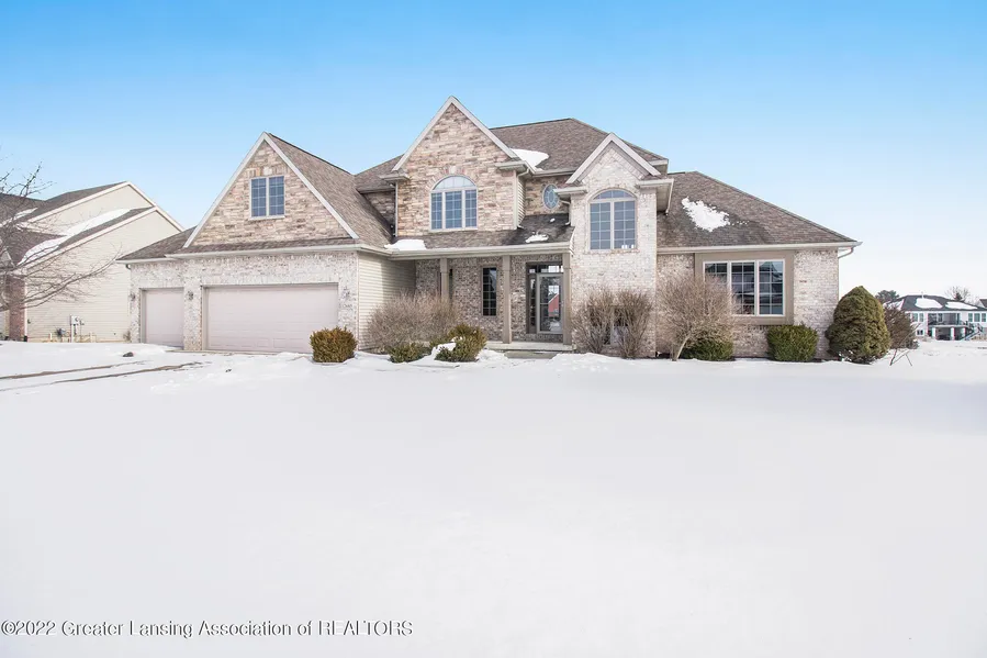 Move right into this freshly painted, luxury home with new carpet throughout. Custom blinds, custom features, like 10ft solid oak doors, oak trim, hardwood floors, dramatic two story foyer and great room. Open stairway with catwalk to 2nd floor bedrooms. Large 1st floor primary bedroom with en-suite double vanity, jetted tub with glass block step in shower. Nice kitchen with stainless steel appliances. 1st floor laundry-washer and dryer included. All this plus a full finished walkout basement with finished rec room, 5th bedroom and full bath. Walkout to your backyard with water views and access to lake. Large deck over looking water too. Covered front porch. 3 car garage, landscaped yard. The association dues allows you access to features like access to any of the community lakes, boat