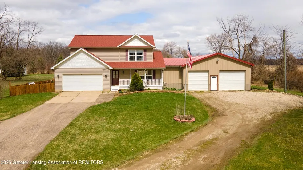 Welcome to 14800 W Eaton Hwy in Grand Ledge! This charming home sits on a spacious 2.16-acre lot in the desirable Grand Ledge School District. Featuring 3 bedrooms and 2 full bathrooms, this well-maintained property offers both comfort and functionality. The home includes a 2-car attached garage on the west side and a newer 30' x 40' pole barn on the east side complete with a concrete floor, power, and garage door openers perfect for storage, hobbies, or a workshop.Inside, the kitchen boasts stainless steel appliances and durable vinyl plank flooring. All three bedrooms are located on the second floor, offering a nice separation of living and sleeping spaces. The seller has made thoughtful upgrades including new garage doors and openers, a new pressure tank for the well, on-demand water heater, and added insulation in the attic for improved energy efficiency.Outside, enjoy a fenced backyard, typically transformed into a large garden during the summer, plus an above-ground pool that stays with the home. Apple, cherry, and pear trees have recently been planted, adding charm and potential for fresh fruit in the future. The front porch was recently repainted, and new gutters have been installed, rounding out this move-in-ready rural gem.