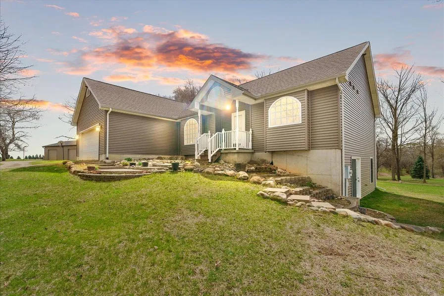 Welcome to 7700 E Walker Rd in Ovid, an immaculate riverfront home nestled on 17 scenic acres along the Little Maple River. This single-owner home was thoughtfully built by the current owner, and it shows in the care and craftsmanship throughout. Beautifully maintained, the property is a rare find, offering both privacy and functionality with trails that create a peaceful mile-long loop through the woods. The home features numerous recent updates, including a new roof (3 years old), siding and gutter guards (2 years), and a brand-new deck (2024). The walkout basement offers daylight windows and plenty of space for future expansion. Inside, enjoy hardwood flooring, a spacious primary suite with double closets, a separate tub and shower, and a convenient first-floor laundry room with a sink