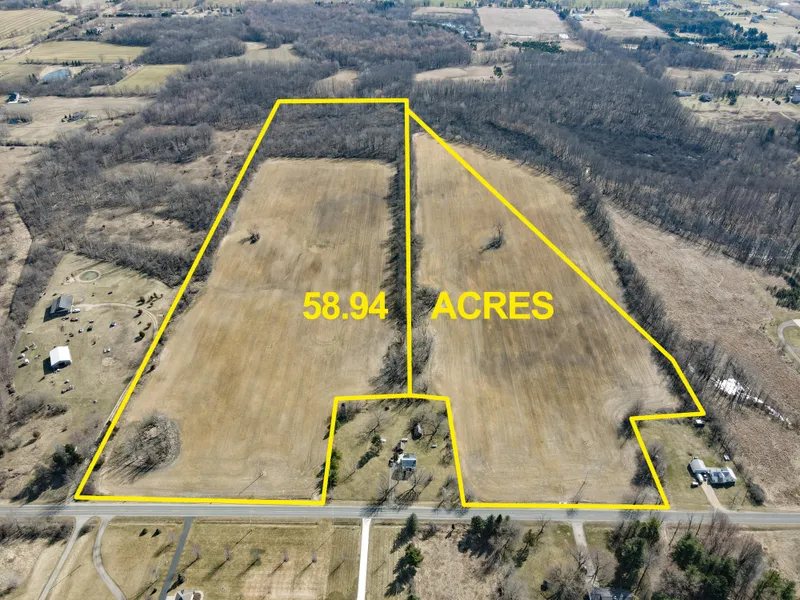 Check out this awesome property in Grand Ledge School District. The offering is two parcels 150-005-300-005-00, 20 acres and 150-005-200-025-00, 38.94 acres. The total offering is 58.94 acres. All land divisions go with the property, should be a minimum of 8 available land divisions based on the land division act. The property has a wonderful rolling terrain and there are several locations that would make a wonderful home site. There are 13 acres of woods and the property also features wonderful hunting. The property has not been recently surveyed and we have not done any perk testing. The property has been owned by the same people since 1969. The property has been leased for farming on