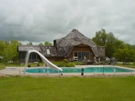 LISTING #35610 120 acres with a 3000 sq. ft. 1.5 story custom built Dome home. The home has a 1520 sq. ft. basement with 9' walls, 3 bedrooms, 3 baths, solid wood doors, large sunporch with its own heat/cool system, 2 fireplaces, and custom oak "Gone With the Wind" staircase. Open floor plan with great country views from every room in the house! The fireplaces are located in the master suite and great room. Outside area has an inground pool with cement & brick patio surround, garden fountain and tons of beautiful flowers. This custom built home is on a dead end road overlooking the 120 acre farm it sits on. 60 acre...