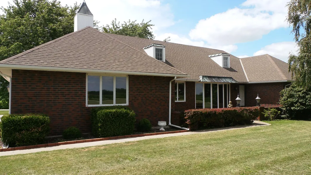 This stately all brick ranch has a fantastic location with lots of room for family activities. The house has 3 bedrooms, 2 baths & 2 fireplaces. An eat in country kitchen has plenty of room plus there is also a formal dining room to utilize during those larger family gatherings. The den sets adjacent to the dining room & the living room sports a wonderful brick fireplace. The home is large (approximately 2017 sq. ft.) but has a cozy warm feeling to it. In the over sized attached garage you will find a nice shop on the side. The large yard has mature trees and landscaping. Osborn, MO
