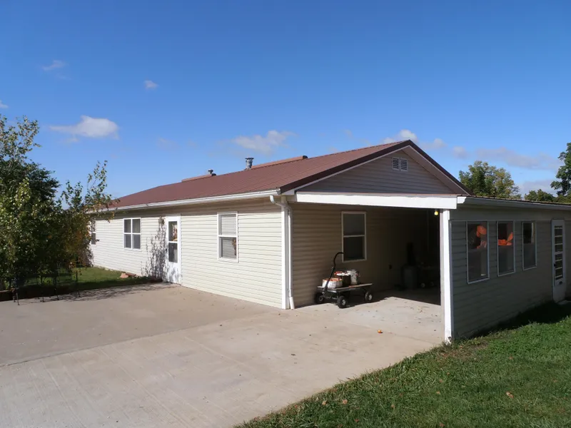 3 bedroom, 2 bath ranch that is handicapped accessible. The home has a tornado shelter, steel roof and vinyl siding. There are 15 acres pasture, 7 timber, 2 ponds, and 2 wells. Outbuildings include a 20 x 40 and 20 x 30 steel storage buildings, 28 x 12 carport and 1000 bu grain bin. Several trees include approximately 25 pecan trees, 16 fruit trees, 9 grape vines and blackberries. Located near Turney in Clinton County.