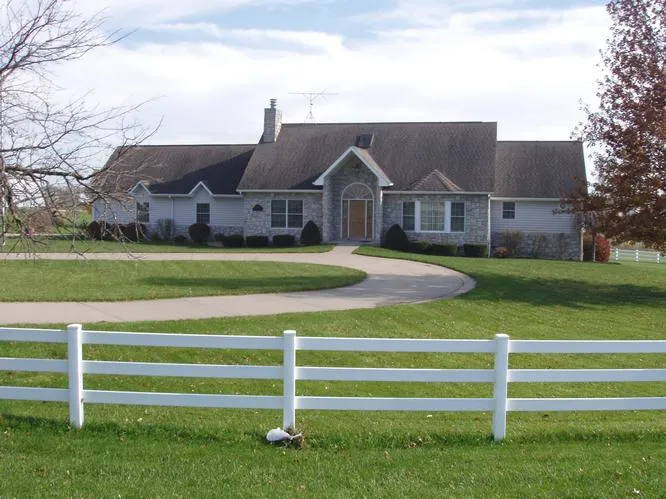 Five bedroom 3 and 1/2 bath home professionally decorated and outside Cameron and not in the city limits.This elegant home was built in 1992 and has over 3885 sq.ft. of living space. The home has large master bedroom and bath on main level formal dining eat in kitchen oak cabinets island corrian counter tops bay windows and all appliances stay. The home has main floor utility room overized double car garage rock wood burning fireplace and beamed ceilings in the family room open staircase with balcony full finished walkout basement with large family rec room and wood pellet stove air source heat pump and intercom system. The home has a screened in back porch and a deck plus a patio on the back of the home. There is a 30'x40' morton building with concrete floor for boat and other storage and a circle concrete driveway and white vinyl fence to add to the stately look. A luxurious home for only $73 per square foot in a growing rural community..