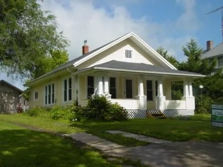 LISTING #36560 2 bedroom dream home. Big double lot. Totally remodeled 2 bedroom craftsman bungalow with more than everything! Cobblestone street, alley access, colored glass door knobs, beveled glass front door, built in china cabinet and wood floors. Main floor laundry. New kitchen with Hickory custom cabinets, new bath, new wiring, new windows, furnace A/C, roof, siding & flooring. Quality remodel. 69,900