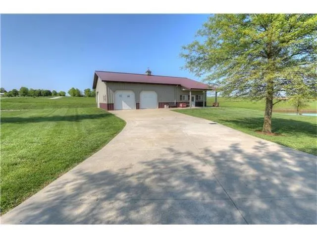 4000 sq. ft. ranch home with walkout basement on 15 acres for sale in Cameron, MO. This 5 bedroom, 3 bath home has all the extras! Mahogany cabinets in the kitchen and basement bar with granite tops...top grade thru-out the home. 2 master suites on the main floor - walk in showers, soaker tub, walkin closets. This home is spectacular! 40x60 detached building with cement, water & elect. 52K gallon in ground pool with pool house, bath and eating area. Also includes $100K outside Belgard outdoor room. This is a must see estate!