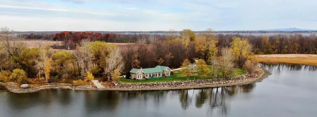 Exciting legacy property that offers a secluded escape. Boasting 1000 feet of scenic Lake Champlain waterfront with boat ramp and dockage site. The home is filled with architectural finishes and has a gracious open concept that takes advantage of the panoramic lake and mountain views. Large family room, cook's kitchen with upgraded appliances and beautiful granite countertops. There is a first-floor master bedroom suite. Above master is a second-floor office/den with bathroom that awaits your finishes. Bedrooms 2 and 3 are tucked above the family room on the opposite side of the home for added privacy. Surround sound is integrated in the main living area with a drop-down movie screen for home theater fun. Future expansion (additional home site and garage sites) is possible with signed landscape architectural drawings. Possibilities are plentiful for this unique property. GPS does not accurately locate home. Flood insurance not required.