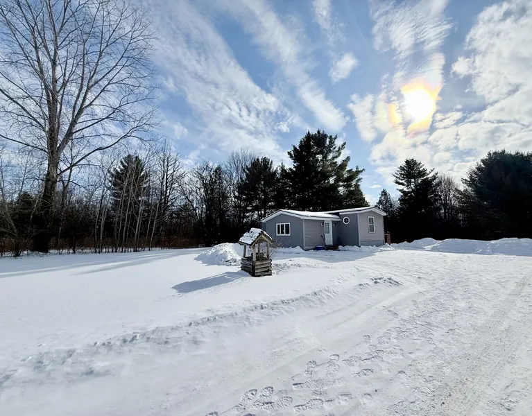 Charming 2-bedroom, 1-bath home set on a private and serene 32-acre parcel. The home features a spacious eat-in kitchen and a large living room, offering comfortable living in a peaceful setting. Enjoy the perfect balance of seclusion and convenience, with easy access to I-87 and the Canadian border. Home has audio/video surveillance.