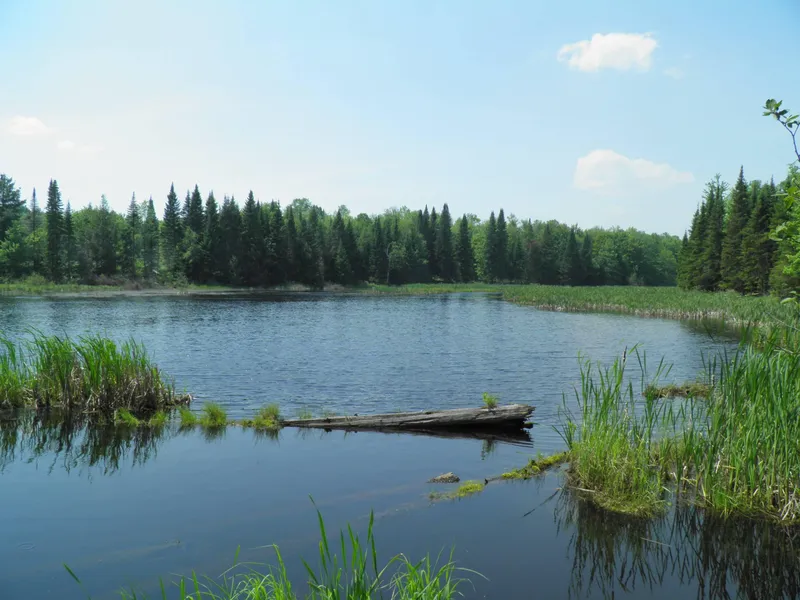 New York land with pond for Sale: Located on ~135 of the original 395 acres, in the Northwest corner of the Town of Mooers, NY is The Churubusco Lodge – Beaver Pond Forest. The centerpiece of the property is a huge pond with several excellent private and secluded cabin settings offering beautiful views. Several year round brooks traverse the property, all empty into Beaver & Lodge Ponds. On the northern border, and almost 2000 acres in size, lies “The Gulf” Unique Area owned by NYS, so named for the gorge running through the land, several hundred feet deep. From the northern border a 10 minute walk places you at the edge of the gorge. Not far from the gorge lie the remains of Sam Smith's cabin. More on the 'Hermit of the Gulf' may be found in the owner's narrative included in this listing. Another interesting feature found on this parcel is Charle's spring, a source of cool, clear water enjoyed by generations of this areas inhabitants. Well established roads and trails on the property allow biking, hiking, snowshoeing, cross country skiing, snowmobiling, and ATVing. Access to the property is at the terminus of Drown Road, through an imposing 8 foot gate. Drown Road is a hardtop road to within 1.25 miles of the C. Lodge property. Beyond the hardtop is a seasonal road, not maintained in winter. That portion could be plowed if winter entry is desired. The present Lodge owners have frequently accessed the property in the winter. Cellular communication is limited at present, however 4G service should be energized in the near future. Power ends at the hardtop. The hardwood forests in this section of the property once supported a maple sugar bush operation with over 10,500 taps. It was carefully logged in 2006, by a veteran logger, overseen by a professional forester. The residual stands are made up of sugar and red maple, white, gray and yellow birch, beech, ash, aspen and many other species, including hemlock, spruce & fir. The emerging growth is a favorite forage of deer and provides both food and cover for other wildlife, especially ruffed grouse. Hunters and wildlife enthusiasts will enjoy the exciting opportunities to hunt, view and photograph whitetails, black bear, coyote, partridge, Canada geese, ducks, snowshoe hare, woodcock and squirrel. A more thorough and colorful narrative of the entire property, written by the owner, may be found under additional information in this listing. Whether you build a permanent structure or not, the existing attributes of this property will keep you, your family and invitees entertained and delighted during your stewardship of the land. This is an extremely interesting and unique property, offered at an attractive price. You can own this magnificent property for $26,850 down payment, with monthly installments of only $961.69*