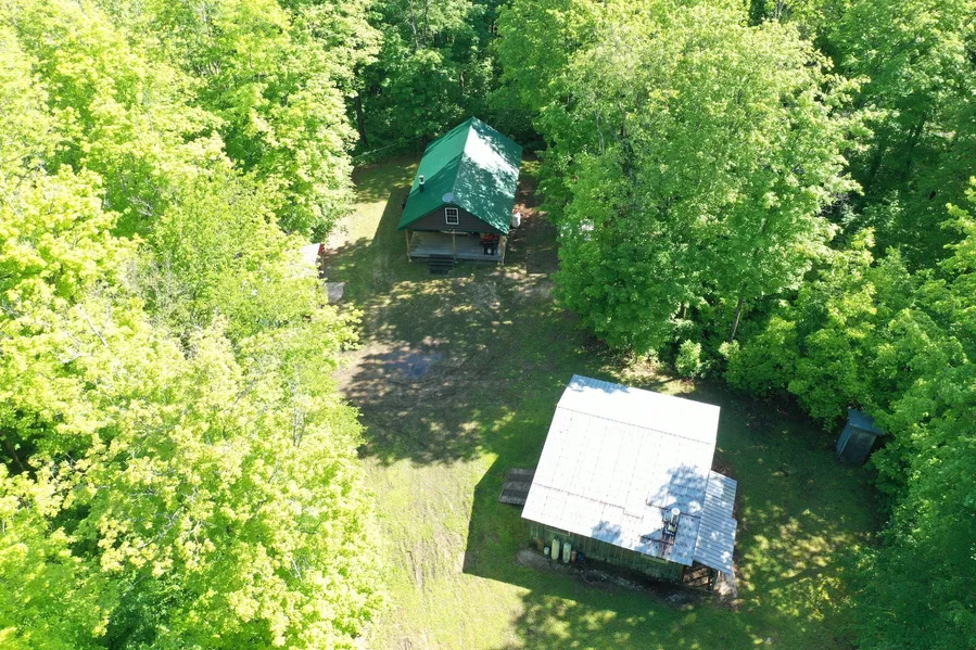 This property offers diverse hunting, fishing on your own 15 +/- acre lake, and income opportunity on a secluded private compound. The camp is beautifully custom-crafted and sleeps 8, with a complete kitchen with custom cabinets, three bedrooms and a full bath including a shower. The quality construction of the cabin built in such a way as to keep out pests and the weather. It has a drilled well with a pump, complete septic and dry well. The house is wired with lights and outlets, heated with propane and or a classic wood stove. Electricity is supplied with a gas power generator located inside another small barn where you barely hear it running. The other buildings can house ATVS, tree stands and other equipment. A very large glass sliding door makes it feel as if you were outdoors and leads to a spacious covered deck that offers plenty of room for gathering outside. Unlike many o...