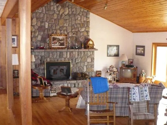 Chateaugay Lakefront-Spacious expanded ranch style home sitting on 348' of lake. Selective tree removal was done for optimal screening and privacy. Great craftsmanship with natural stone and wood. Needs minor exterior work and priced accordingly for quick sale.