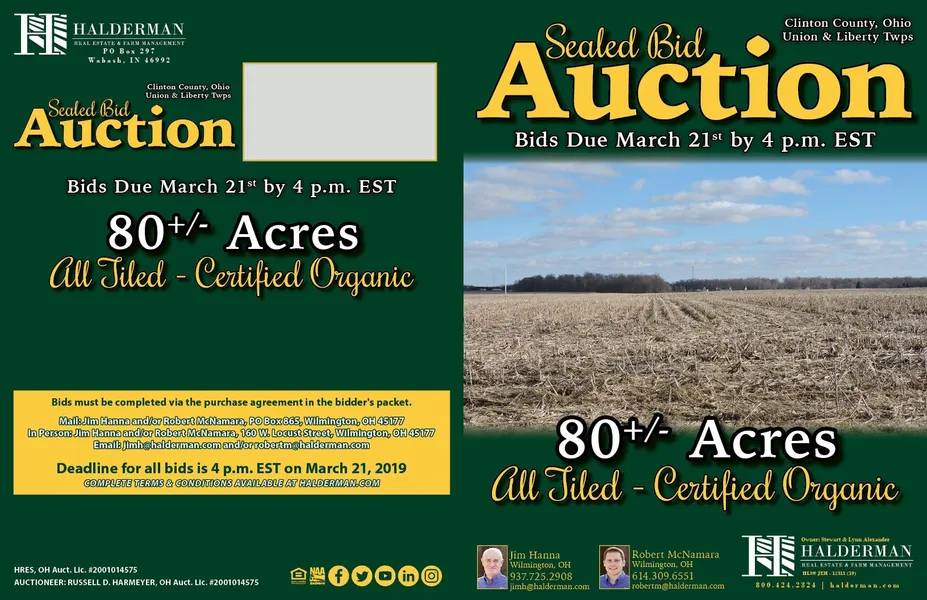 Legal Description 80 +/- Acres, Subject to New Survey (Fronting on Gurneyville Road and W. Mt. Pleasant Road) in Union and Liberty Townships, Clinton County, Ohio