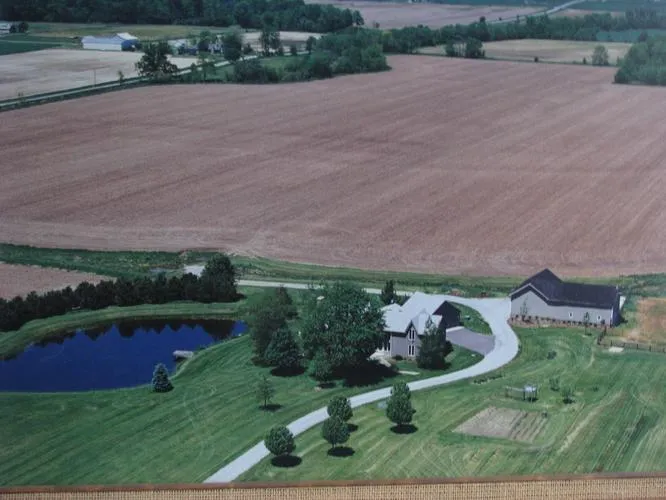 Tract 2: 7.6 Acres with cedar-sided 3,500+ sq. ft. home, .3 acres pond and 490' road frontage. The home has 9 rooms, 3-4 bedrooms, 3.5 bathrooms, custom cabinetry, abundant storage and closet space. Home has a 2 car attached garage, a frame barn with concrete floors and metal roof.