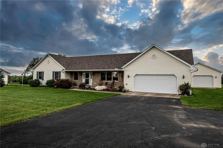 Beautiful country setting, close to town, minutes to interstate 71, 1.543 acres and newer pole barn makes this an attractive property. The home is 2176 square feet with roomy rooms. Roof is new in 2020, water heater new in 2021 and pole barn has electric and concrete floor and shelving for storage. Beautiful sunset views!!