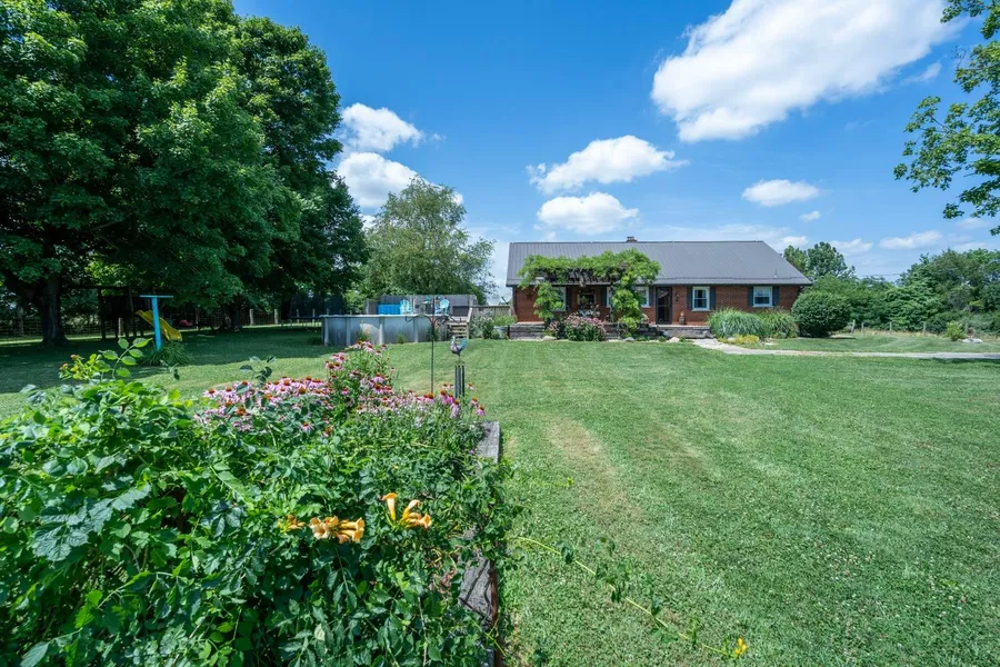This is a true showplace with 19.5 acres of pasture, woods, tillable ground plus a nice pond w/lots of fish! Gorgeous 4 BR, 2 1/2 bath, brick home, wood burning f/p, eat-in kitchen, beautiful cabinets, large living room with stunning view, lower level has a finished family room. Newer windows & roof. detached 2 car garage 47X25, 80X48 barn w/elec & water, plus 8 stalls! 80X10 lean to! Very private setting! One year home warranty!