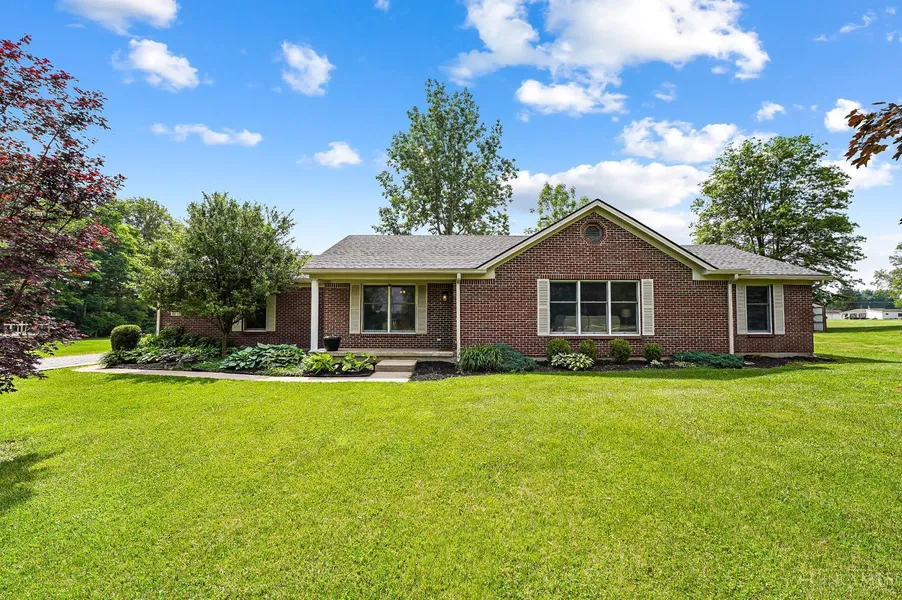 Beautiful brick RANCH resting on a mature 1.5 acre lot. Full finished basement offers a large recreational room, full bath & 2 additional bedrooms. New 50 yr dimensional shingle roof, new gutters & downspouts, newer composite deck, hardwood floors, & fresh paint throughout. Insulated 40x60 pole barn is perfect for a workshop or home business & comes equipped with central a/c, heat, 1/2 bath, & hydraulic lift. Peaceful country setting on a quiet road. Clinton-Massie Schools. Lovingly maintained for over 28 years by the original owners! See feature sheet for more details!