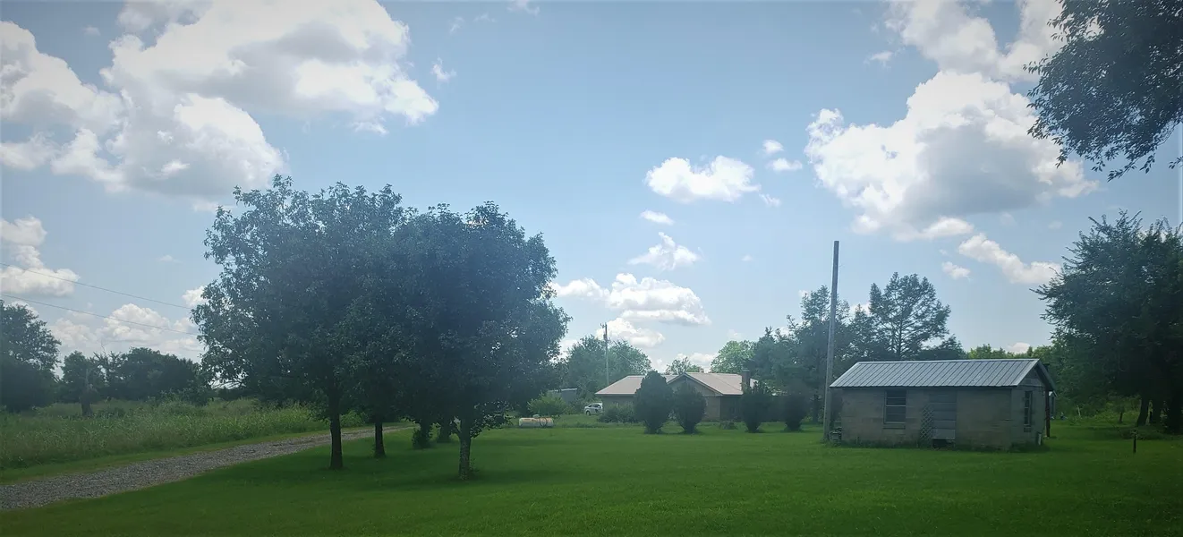 Property is 7.97 acres with a partial piece of north end of coal strip pit pond that lays on the southwest side of the acreage, and has additional small pond on the northeast side of property. The pond is stocked with bass, catfish and crappie. The brick and rock home was built in 1977 and the original owners still reside in the home. The metal roof is approximately 5 years old. The home is ready to move into, but is in need of some remodeling. The metal shop has electric.