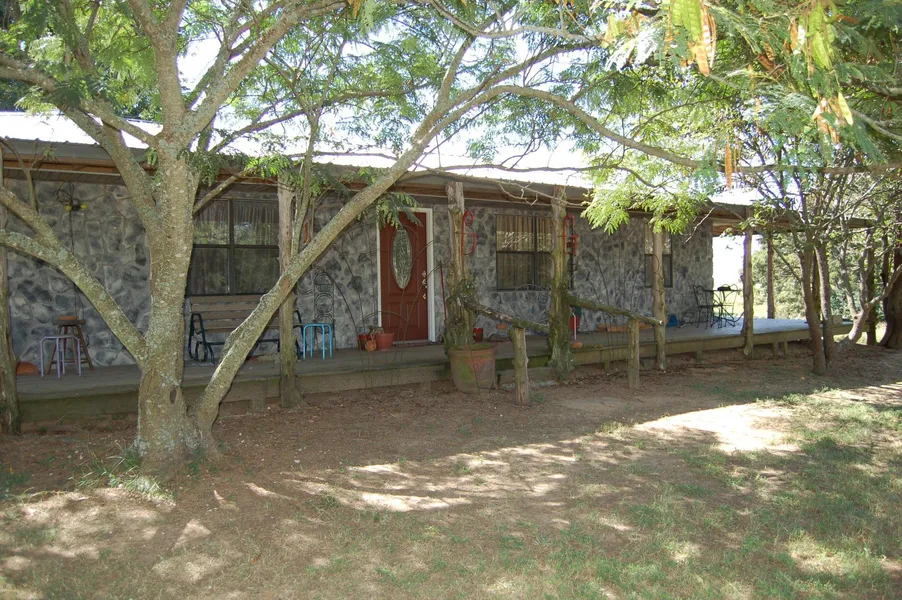 A small piece of land you can call home. The well-maintained rock home has an open floor plan. The living room has good-sized windows that bring in natural light. There is a coat closet just off the front door. The kitchen has new stainless steel appliances and a good-sized pantry. There is a laundry room just off the kitchen. The master bedroom has a full bath. The best thing about the master bedroom is the door going out to the porch that looks out at the pond. The hall has a linen closet and a full-size bathroom. Two water heaters so no one has to take a cold shower. There is an average size bedroom down the hall. At the end of the hall, there is a large spacious room, with a nice walk-in closet. This room would be ideal for children, they could have a sleeping area, plus plenty of room for toys.