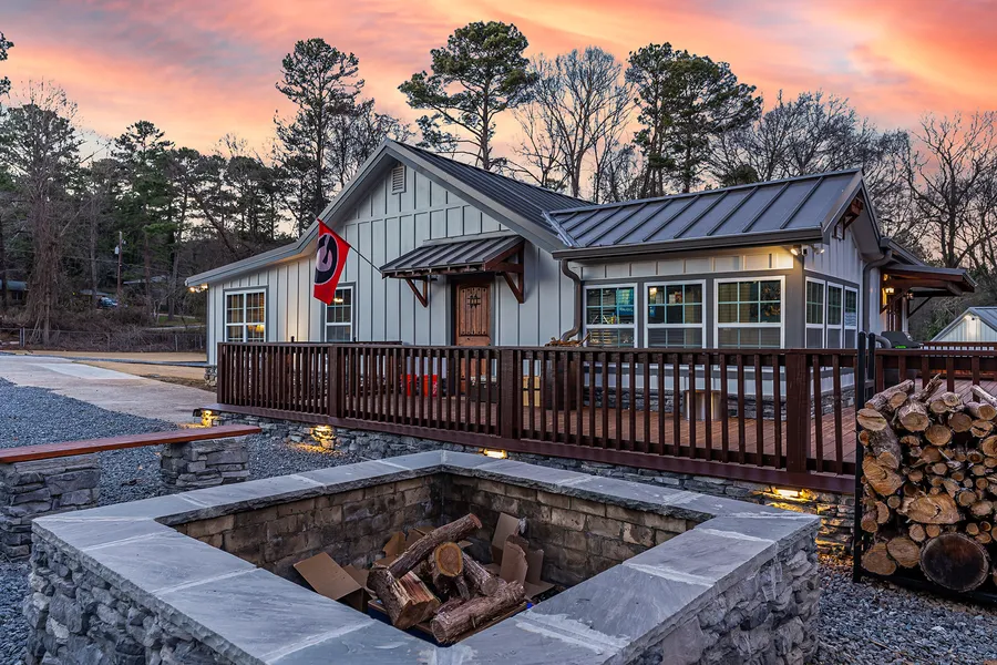 This versatile home will have you dreaming of endless possibilities. Located in the peaceful suburbs of Mableton, this completely fenced in 1.2+/- acres provides privacy and serenity. Step through the front door and be greeted by this rustic and modern home. The beautifully designed open concept allows flow through the living room, kitchen and dining areas. Master bathroom features a very spacious double sized walk in shower and a double vanity. The multi-use laundry room comes with a convenient "wet corner" for your adorable furry friends or for just cleaning up after a long day. A beautiful solid wood decking area wraps around two sides of the home, as well as a screened in patio on the third side which starts the covered and lit walkway from the house, to the workshop and garage. This three car garage with bathroom and 12 foot plus workbench is the perfect project area. With the whole property completely renovated, you will find all new plumbing, heating, AC units, irrigation, outdoor lighting, windows, roof, gutters and drainage. Located at the end of the driveway is an open air barn as well as plenty of space across the property for vehicles, even including room for an RV. Sit back, relax, open the door and enjoy that beautiful sound of Georgia, or take a seat by your uniquely, hand built outdoor fireplace. This is a must see in-person property!