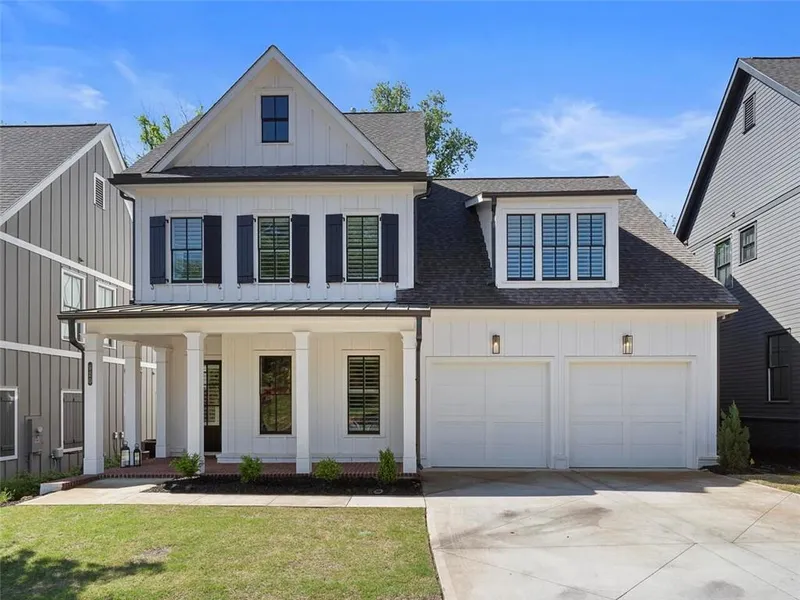 The Cottages at Keeler Woods is another successful Monte Hewett cul de sac of homes that uniquely face a park with a firepit for the residents to enjoy. So close to Marietta Square! This new construction gated community features beautifully designed custom single family homes that are fresh and transitional. Energy efficiency in mind with tankless hot water heater. This residence features upgrades including hardwood flooring, on both levels, plantation shutters throughout and a chefs kitchen featuring the best in Bell cabinetry, quartz countertops, large walk in pantry and bar with wine cooler and an upgraded appliance package featuring Jenn-Air appliances. Perfect for entertaining and open to the dining and living room. The dining room has double doors that open the the covered patio with another gas fireplace and turf lawn. Create a beautiful outdoor living space for alfresco dining with fireplace. The floorplan features a bedroom on the main or it can be a private home office. Heading upstairs, the primary bedroom retreat features a large dressing room, oversized glass shower and sumptuous bath. The upstairs living room/covy media room compliments three more spacious bedroom suites each with a large bath and ample walk-in closets. If you are looking for a new gated cul de sac community of well built homes and just minutes from Marietta square and great restaurants, this is it! The hiking trails of Kennesaw Mountain National Park are nearby and more. Furnishings negotiable and fit the spaces perfectly.