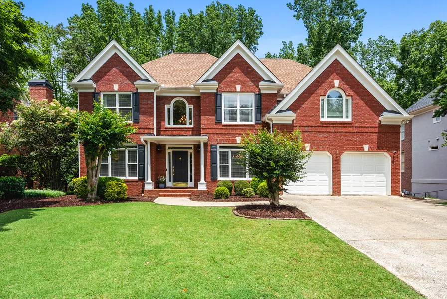 Welcome to this stately brick home, offering exceptional space, style, and functionality in a sought-after community with clubhouse, pool, and tennis/pickleball courts. Recent upgrades include newly added and refinished HARDWOOD FLOORS ON THE MAIN LEVEL, NEW CARPET throughout the upper and terrace levels, FRESH NEW PAINT THROUGHOUT, new light fixtures and ceiling fans, TANKLESS WATER HEATER, and refreshed landscaping. A grand two-story foyer is flanked by formal living and dining rooms with elegant trim and arched openings. The spacious OPEN FLOORPLAN with the family room flowing seamlessly into the island kitchen, which features white cabinetry, a new microwave and oven, gas cooktop, pantry, and breakfast area. Step out onto the newer TREX DECK with updated railings, overlooking a peaceful, fenced, LEVEL BACKYARD perfect for play or relaxation. An additional covered SIDE PORCH adds charm and versatility. Upstairs, the generous primary suite offers a private retreat with a sitting room, its own covered porch, a luxurious bath with dual vanities, soaking tub, separate shower, water closet, and a large CUSTOM WALK-IN CLOSET. Three additional bedrooms and a Jack-and-Jill bath complete the upper level. The expansive terrace level provides incredible versatility with multiple finished areas, including a RECREATION ROOM with stone fireplace and wood beam ceiling, a SECOND GAME ROOM with wet bar, a full bath, and a room ideal for an office or guest space (no window or closet). A massive unfinished storage area beneath the garage slab provides excellent "FLEX" SPACE for a workshop, gym, craft room, or additional storage. This home truly has it all space, updates, and in a wonderful community. Welcome home!