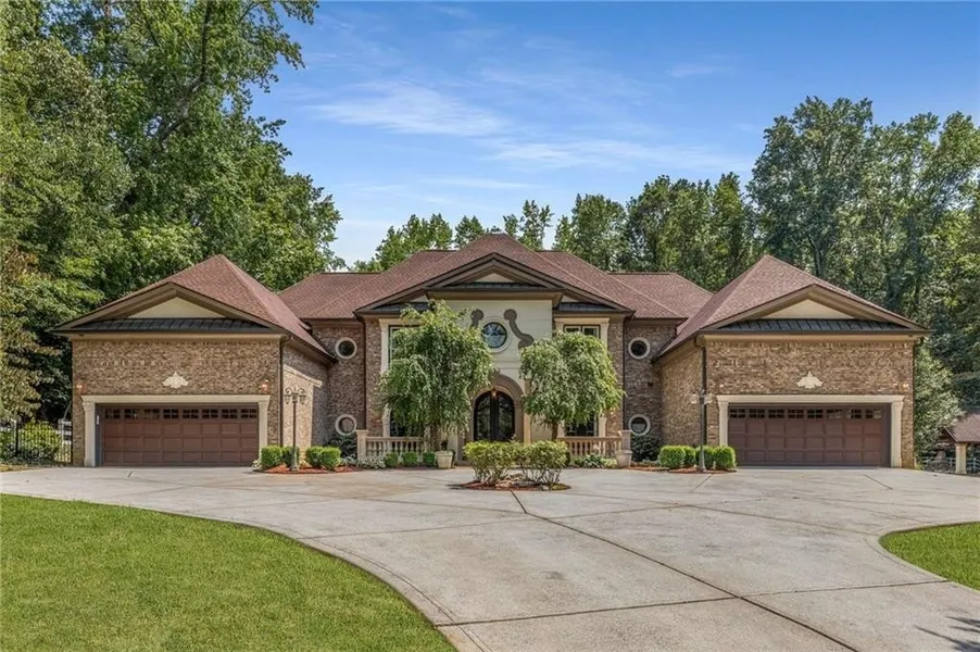 Refined luxury meets resort-style living in this extraordinary 6-bedroom, 5.5-bath European style estate, set on nearly five private acres in the heart of Smyrna. Offering close to 7,000 square feet of beautifully designed living space, this home is the perfect blend of elegance, comfort, and functionality. With a newer roof and a spacious four car garage, the property has been meticulously maintained and thoughtfully upgraded throughout. From the moment you step inside, you're welcomed by a grand chisel stone arch hallway and a dramatic spiral staircase that immediately sets the tone for the craftsmanship and detail that define the home. Imported Italian tile flows underfoot, leading you into the heart of the home a custom-designed chef's kitchen featuring a large island with counter seating, prep sink, custom cabinetry, and stainless steel appliances. The kitchen opens into an inviting informal dining space with a built-in bar, creating an ideal layout for entertaining and everyday living. The main level also features a bright and airy living room filled with natural light, a formal dining room, a cozy great room, a laundry closet, a versatile multi-use room, and a private bedroom with ensuite bath perfectly suited for a nanny suite, in-law suite, or guest accommodations. Movie nights are elevated in the private, theater-style media room, complete with surround sound, a projector, and tiered seating for the ultimate in-home cinema experience. Just beyond the living spaces, step out into your own personal backyard resort. Lush, manicured landscaping surrounds the saltwater pool, jacuzzi, covered outdoor fireplace, firepit, and basketball court offering endless opportunities for relaxation, entertaining, and recreation. Upstairs, the expansive owner's suite is a true sanctuary. Vaulted ceilings and large windows create an open and serene environment, while the luxurious en-suite bath features a soaker tub, walk-in shower, and an oversized custom closet. The suite also includes a fully equipped private gym, providing a convenient and motivating space to stay active without leaving home. Additional highlights include a Control4 whole home audio/video system and integrated smart home technology throughout. Ideally located just minutes from shopping, dining, and major highways, this exceptional estate offers a rare opportunity to own a private retreat in one of Smyrna's most desirable areas. Every detail has been considered this home is truly one of a kind. Situated just minutes from The Battery, Truist Park, Downtown Smyrna, Vinings, and major highways