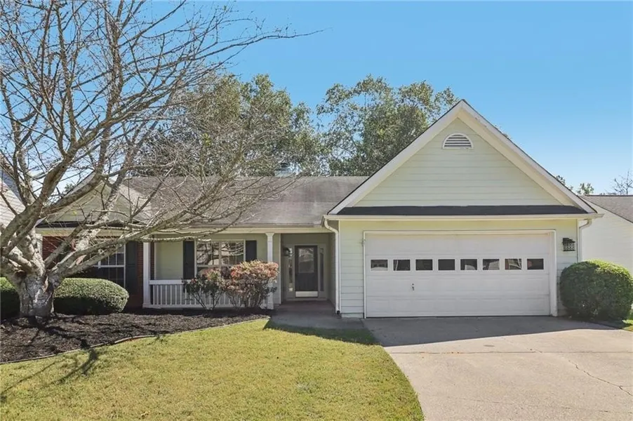 Lovely Single-Story Home with Bright, Open Spaces! This inviting home features a sweeping front yard and welcoming porch. Inside, beautiful, easy-to-maintain vinyl wood floors run throughout the living areas and bedrooms-no carpet! The open-concept living room offers a cozy fireplace, while an architectural entryway leads to the formal dining room with chair railing. A bright sunroom with a wall of windows makes the perfect reading nook or relaxing retreat. The on-trend kitchen includes white cabinetry, granite countertops, tile backsplash, stainless steel appliances, and a center island, plus a breakfast room overlooking the private backyard. The primary suite features a vaulted ceiling and en-suite bath with dual vanities, a soaking tub, and a fully tiled walk-in shower. Two additional spacious bedrooms and a full bath provide plenty of room for everyone. Enjoy outdoor living in the fenced backyard with mature trees, green space, and a patio ideal for grilling and entertaining. Community amenities include a clubhouse, pool, and playground. Conveniently located near schools with easy access to shopping and dining, this home offers both comfort and convenience! Book your tour today!