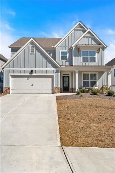 For lease or purchase. Beautiful home, only 2 years old, upgraded with plank flooring throughout the main, stainless steel appliances in the kitchen, large center island, upgraded lighting throughout the home, coffered ceiling in the dining room, bedroom and full bathroom on the main with tile floors, owners suite is gigantic, has extra room for sitting area, large owner's bathroom. Large loft area upstairs to ask as "basement" area for media, movies, games and more. All secondary bedrooms are large. Beautiful front porch and covered back porch for relaxing and entertaining in your fenced backyard. Ask about the 4.75% interest rate.